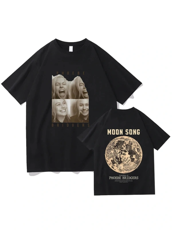 Siyah Phoebe Bridgers Saf lu Ay Şarkısı Grafik Tees Y2K Yuvarlak Boyun Emo Halk R
