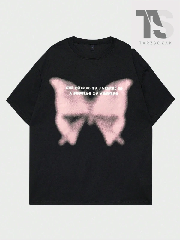Street Life Erkek Pamuk Sloganlı Kelebek Grafikli Tişört