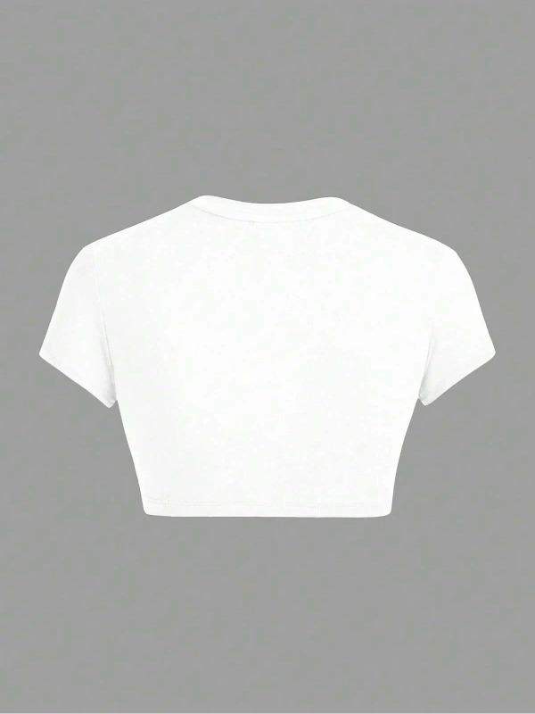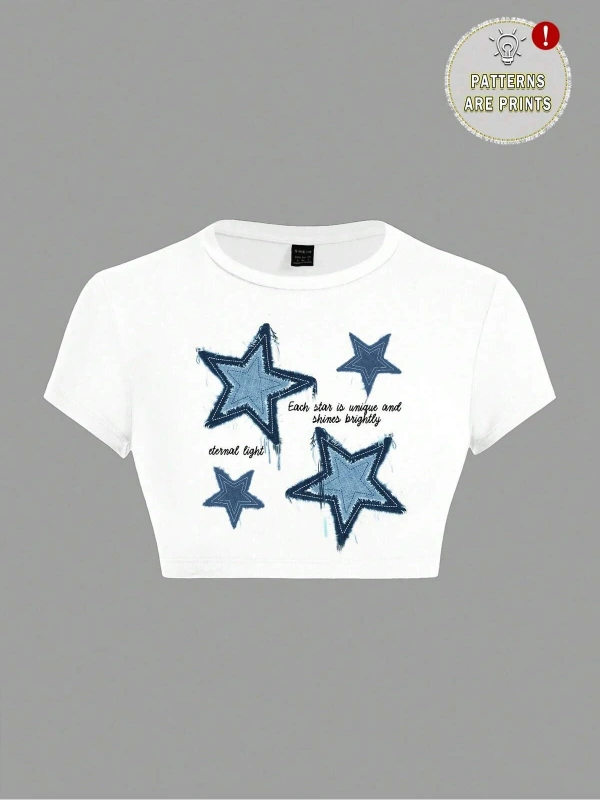 Yıldız Grafikli Yuvarlak Yaka Kısa Kollu Crop