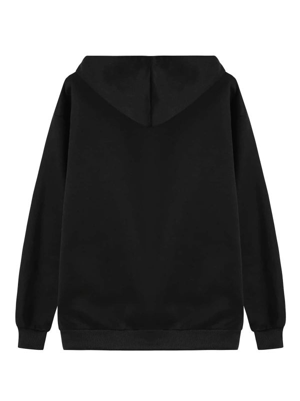 Unisex Baskılı Oversize Kapşonlu Sweatshirt Siyah