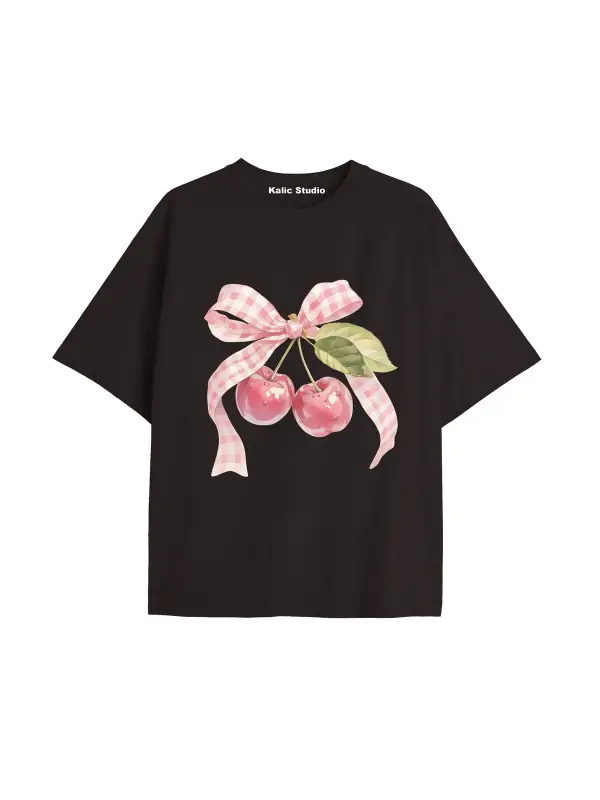 Y2k vintage Cherry Baskılı Sİyah T-shirt KOD 99