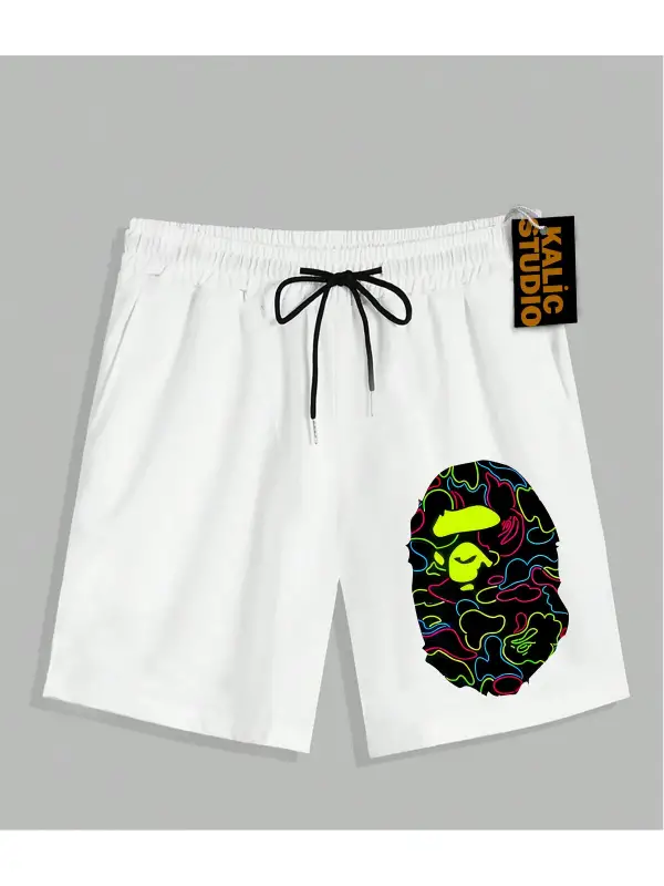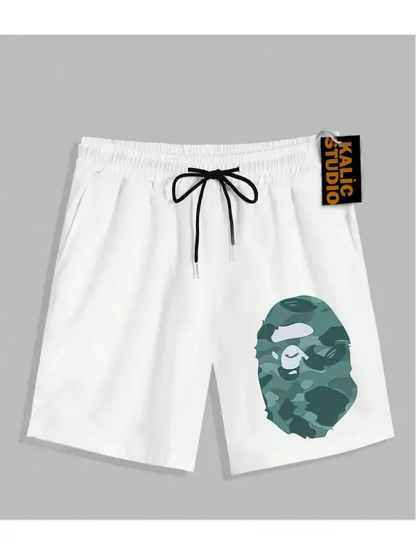 UNİSEX Bay Bape Desenli Beyaz Yazlık ŞORT