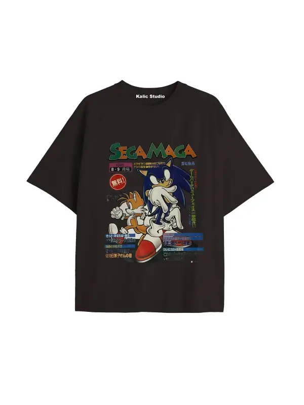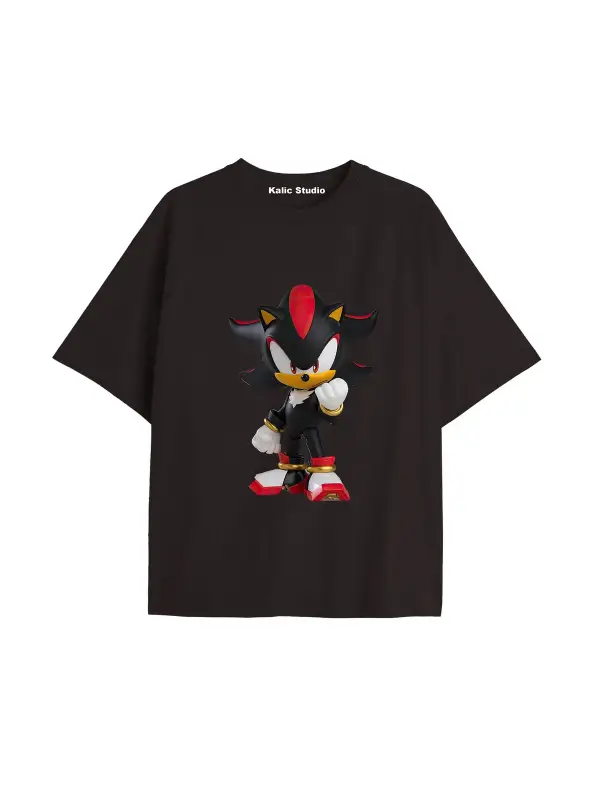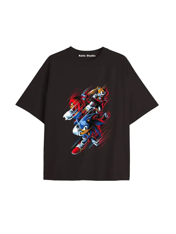 UNİSEX Bay Sonic Desenli Siyah Yazlık T-shirt