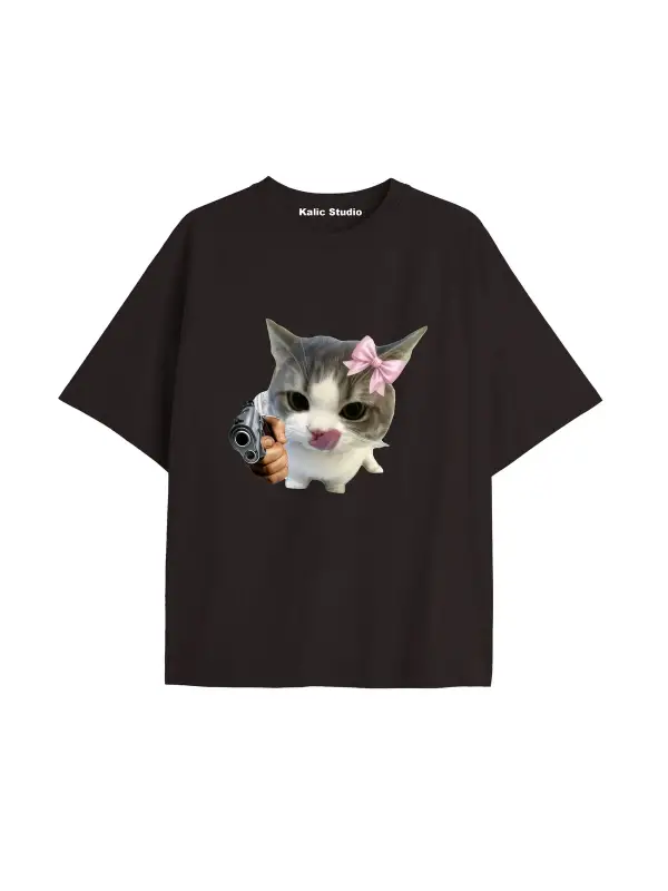 Y2k vintage Cats Baskılı Sİyah T-shirt KOD 36