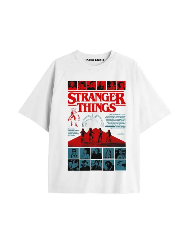 Stranger Things Baskılı oversize ünisex t-shirt beyaz