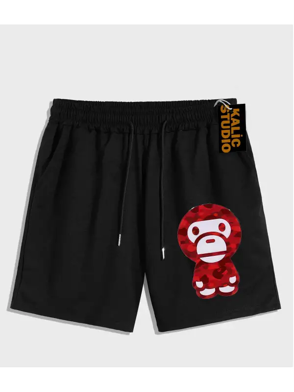 UNİSEX Bay Bape Desenli Siyah Yazlık ŞORT