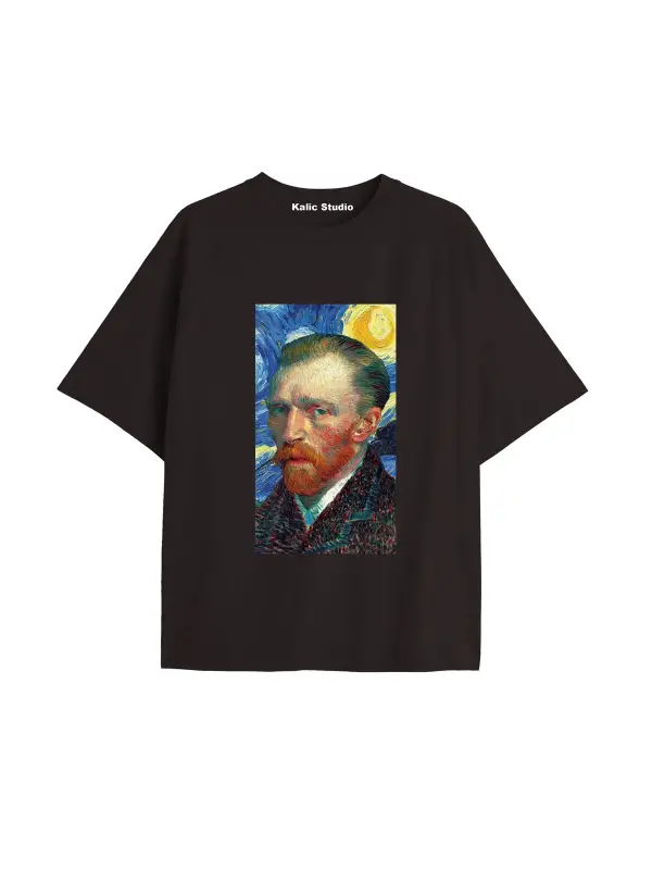 Unisex Van Gogh Baskılı Oversize Tshirt