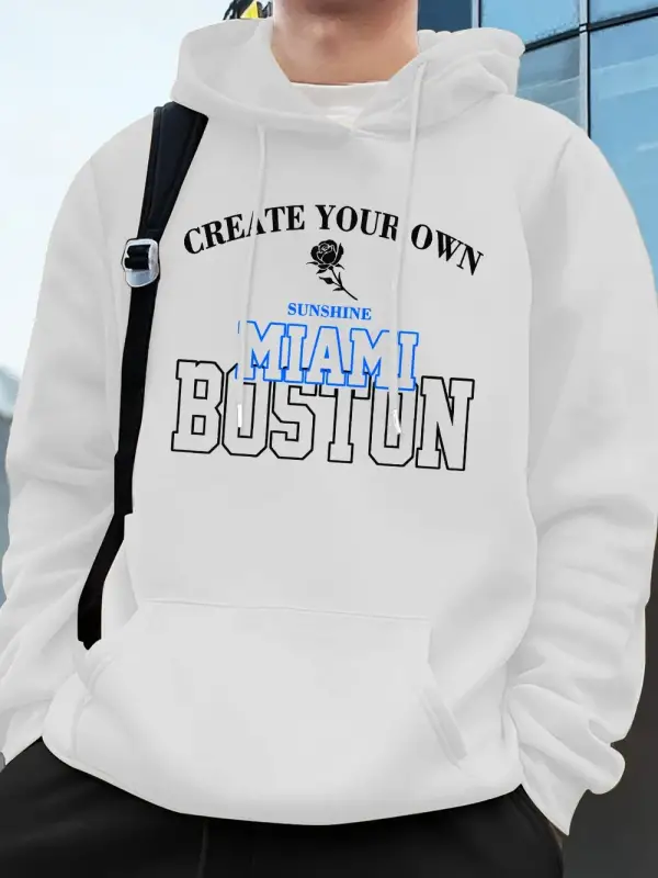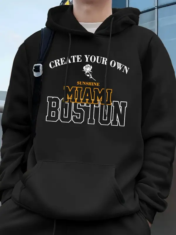 Miami Boston Mektup Baskı Kapüşonlular Erkekler Kış Polar Sıcak Kazak Koşu Cep Kazak Sportif