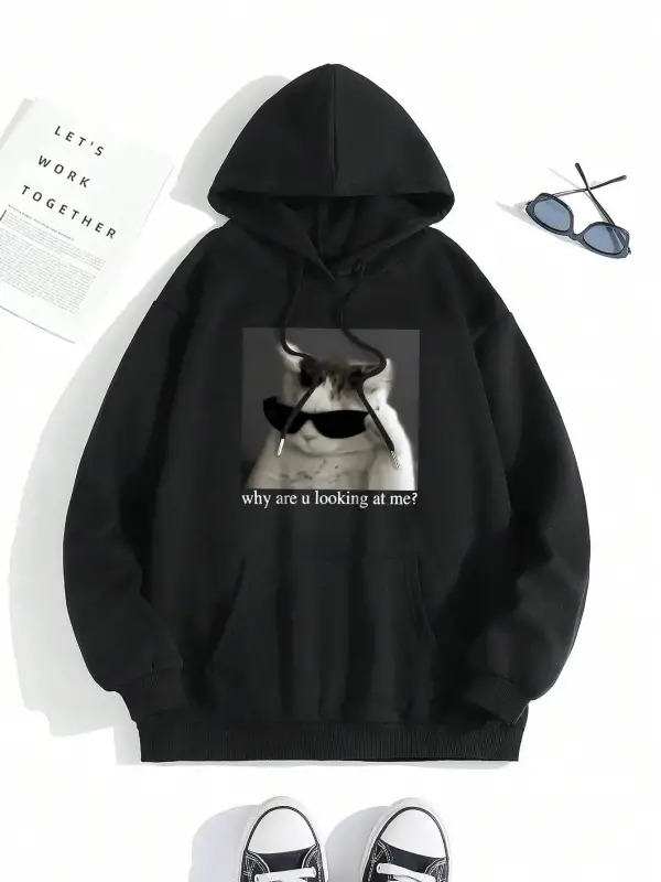 Neden benimle bakıyorsun? Baskı Hoody Erkekler Moda Rahat Kazak Basit Gevşek Kapşonlu Sonbaha
