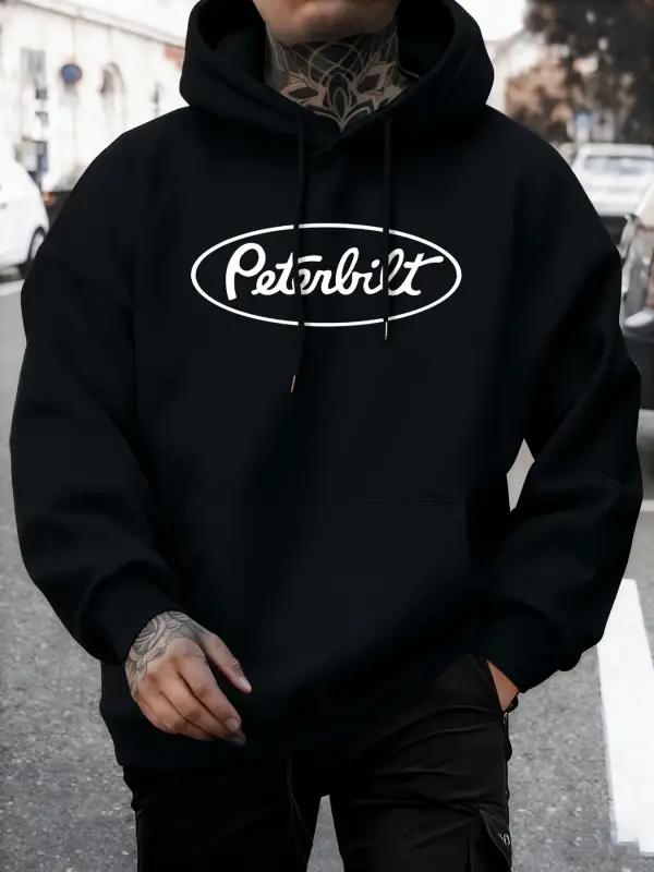 Peterbilt Harfli Baskılı Polar Sonbahar Sweatshirtleri Erkek Yumuşak Koşu Kapüşonlu Üstü Soka