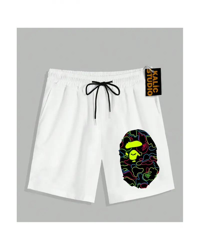UNİSEX Bay Bape Desenli Beyaz Yazlık ŞORT