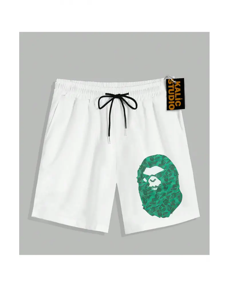 UNİSEX Bay Bape Desenli Beyaz Yazlık ŞORT