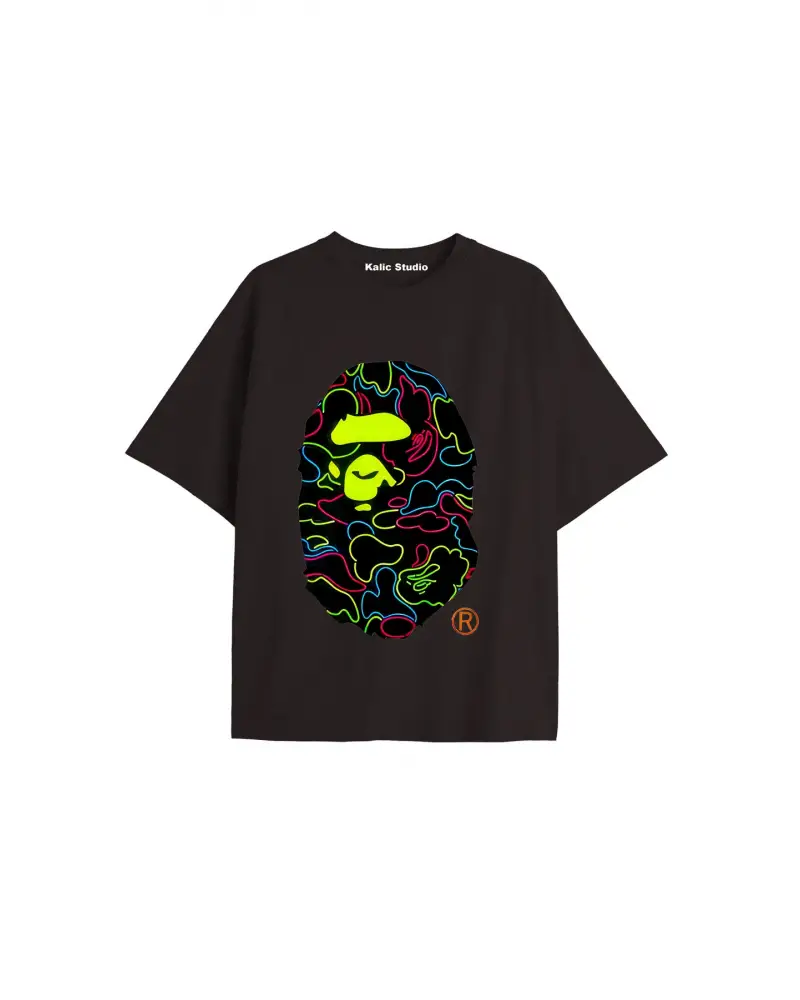 UNİSEX Bay Bape Desenli Siyah Yazlık T-shirt
