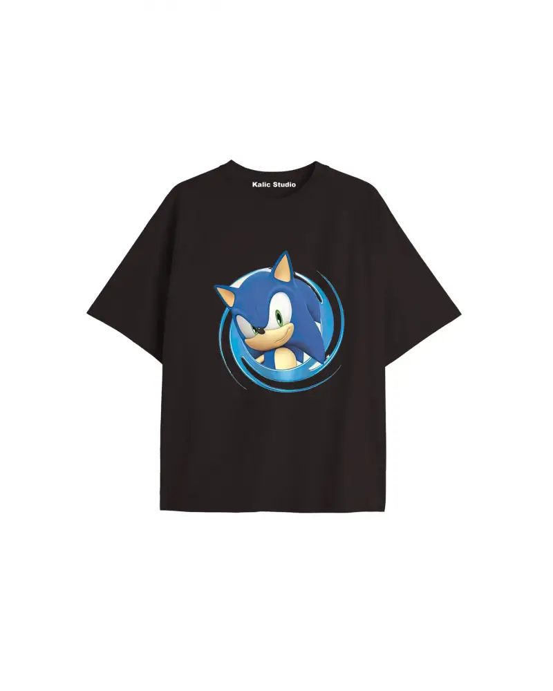 UNİSEX Bay Sonic Desenli Siyah Yazlık T-shirt