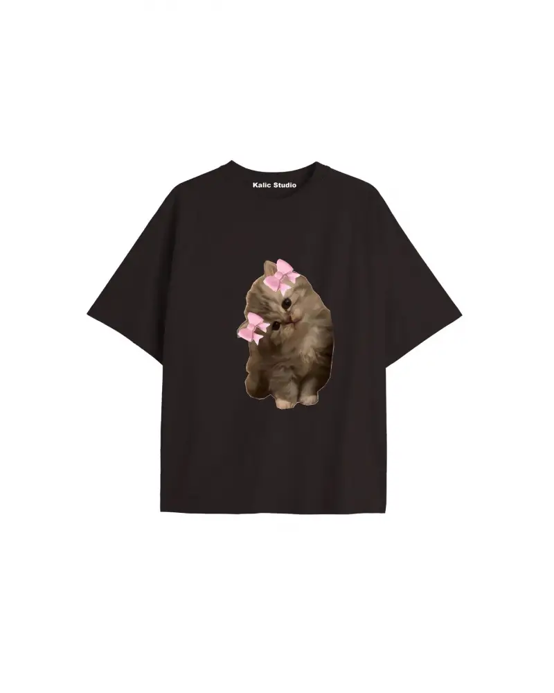 Beyaz Oversize T-shirt happy kedi Özel tasarım