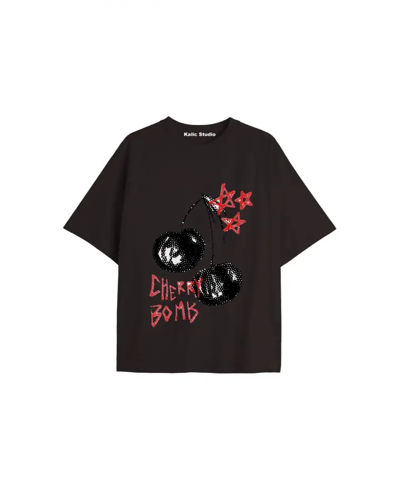 Y2k vintage Cherry Baskılı Sİyah T-shirt KOD 82