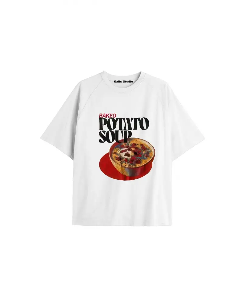 Kadın Oversize Olives and Wine Tshirt Beyaz