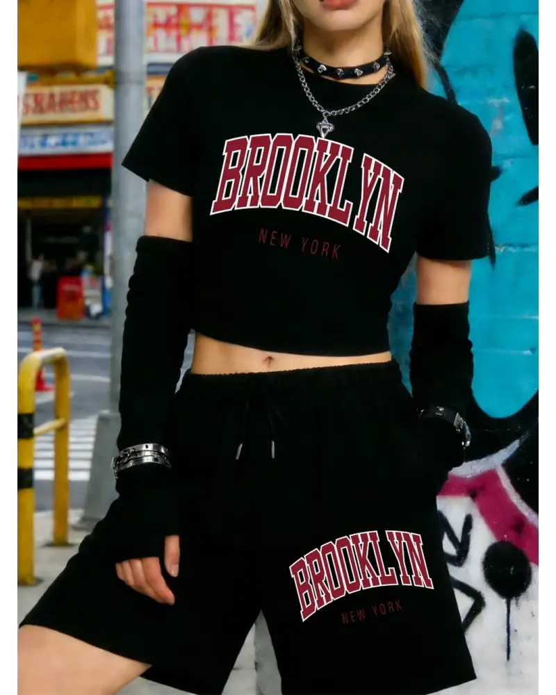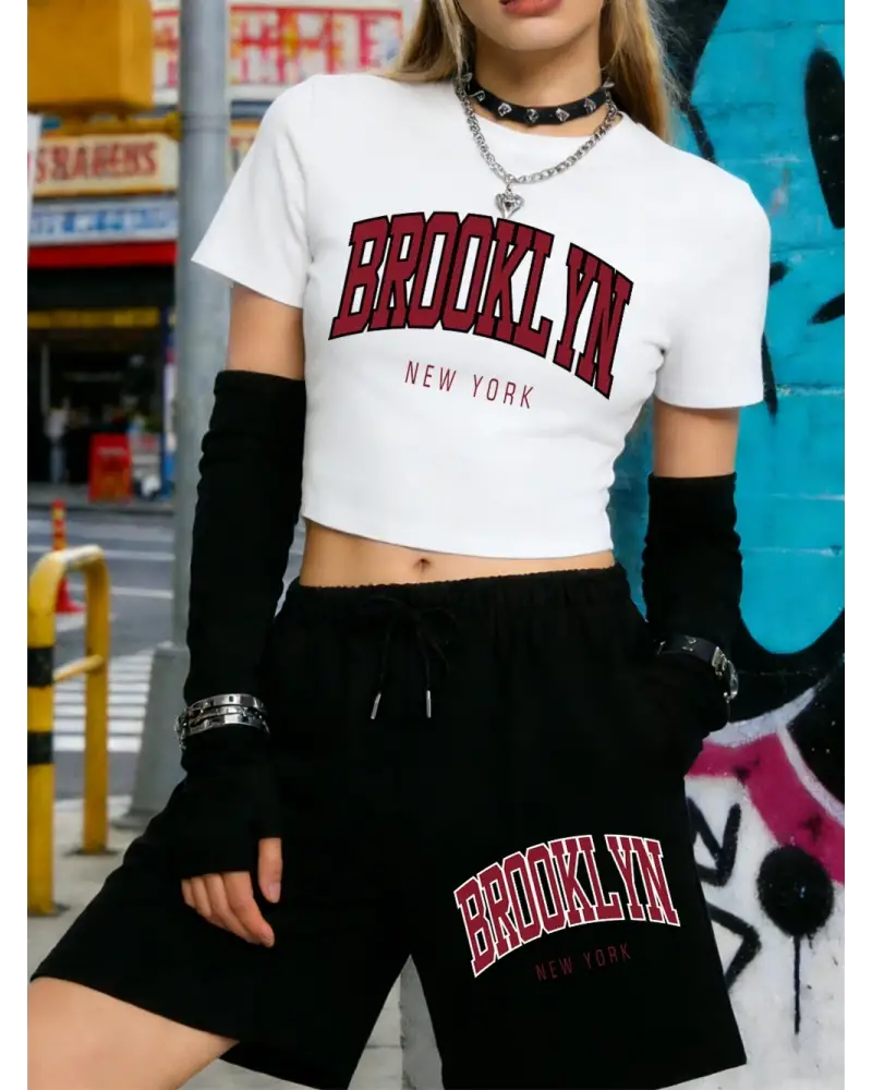 Yaz Brooklyn New York Baskılı Babby Teelar Şortlar Kadın İki Parçalı Set Beş Cepli Pantolonlar kaliteli malzeme ve konforlu kullanım sunan bir üründür. Günlük kullanım için ideal olup uygun fiyat ve hızlı kargo avantajıyla sunulmaktadır.