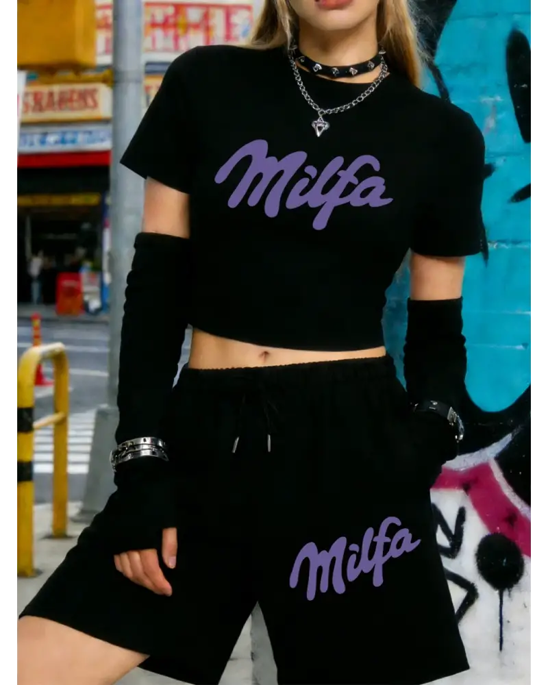 Yaz Milfa Mektup Baskılı Kırpma Üstleri Şort Kadın Seksi İki Parçalı Set Beş Nokta Pantolon Y kaliteli malzeme ve konforlu kullanım sunan bir üründür. Günlük kullanım için ideal olup uygun fiyat ve hızlı kargo avantajıyla sunulmaktadır.