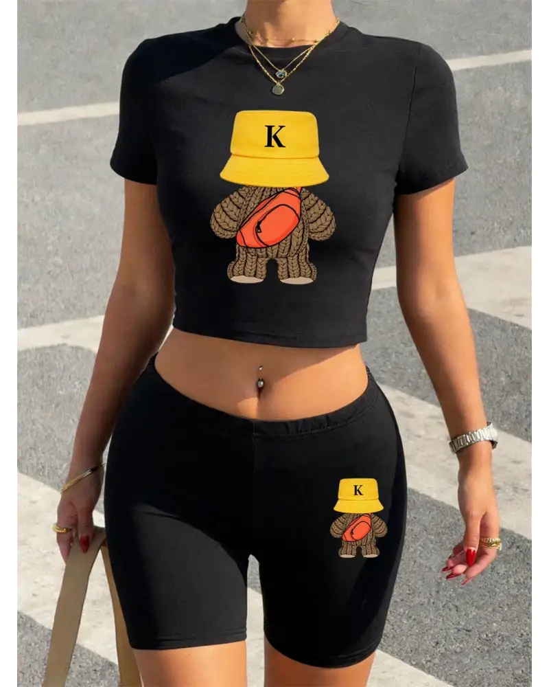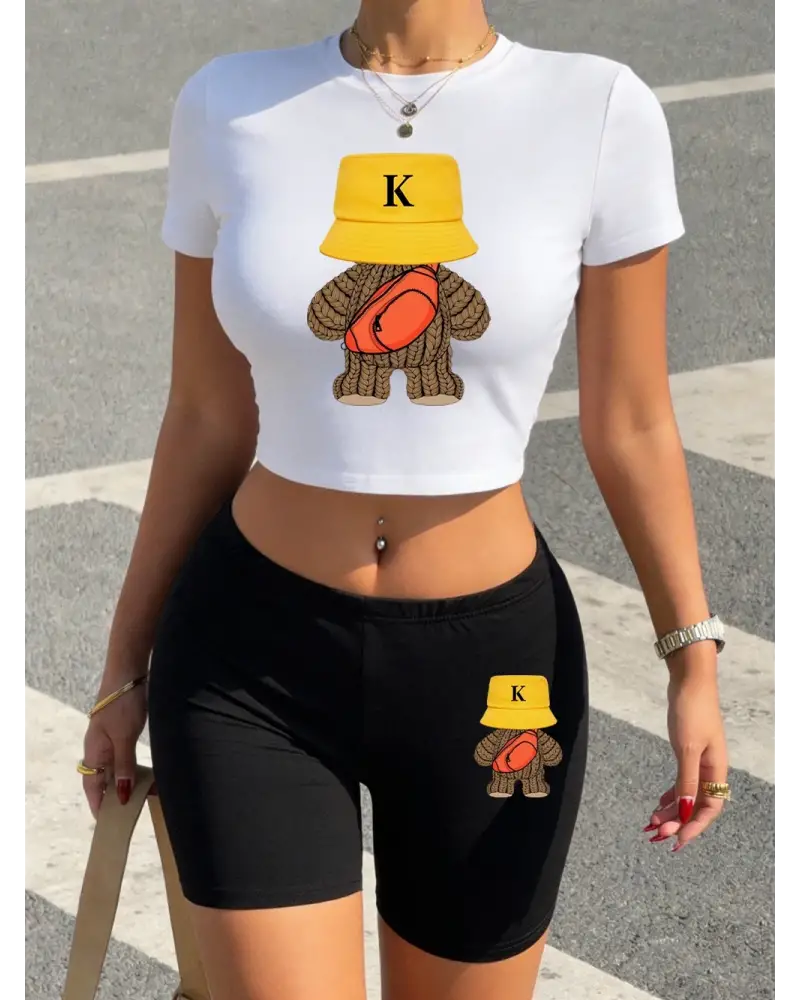 Yaz Spor Yünlü Ayı Baskılar Kırpma T-Shirt Şort Kadın Seksi İki Parçalı Set Üstleri Pantolon kaliteli malzeme ve konforlu kullanım sunan bir üründür. Günlük kullanım için ideal olup uygun fiyat ve hızlı kargo avantajıyla sunulmaktadır.