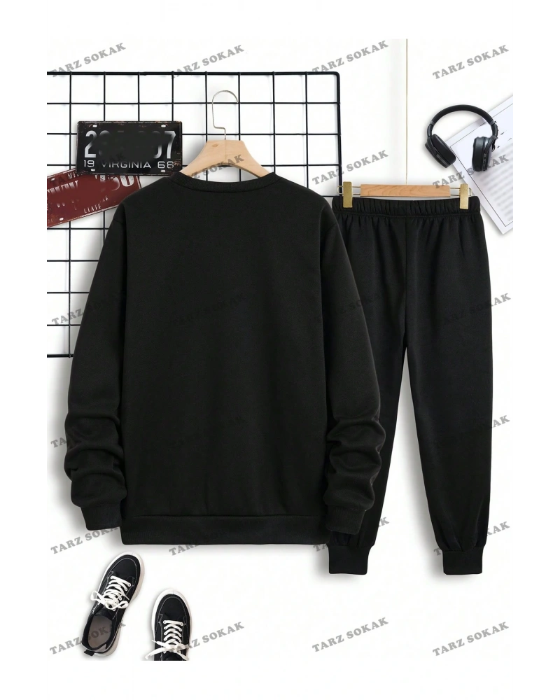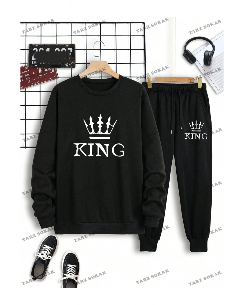 Erkek Taçlı ve Harfli Grafikli Kazak ve Eşofman Altı