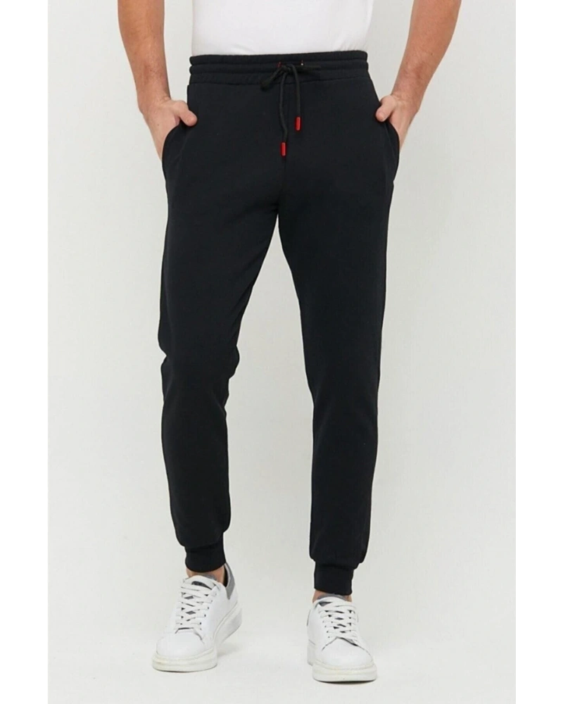 Erkek Siyah Slim Fit Dar Kesim Jogger Eşofman Altı 2 Iplik Şardonlu RLX044513