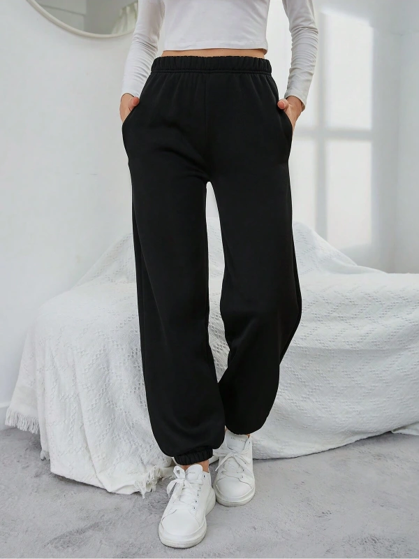 Düz Elastik Bel Eğimli Cepli Eşofman Altı