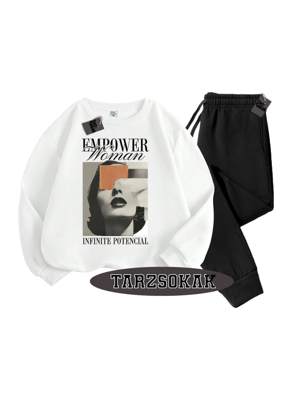 Beyaz Kapşonlu Eager Detaylı ikili TAKIM