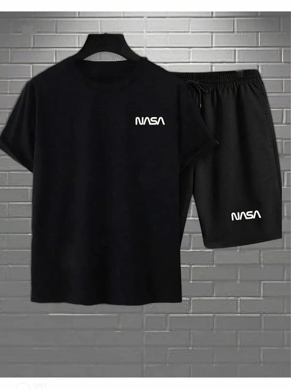 Unisex Yazlık Nasa Baskılı Şort T-shirt Eşofman Altı 3’lü Set BSSORT