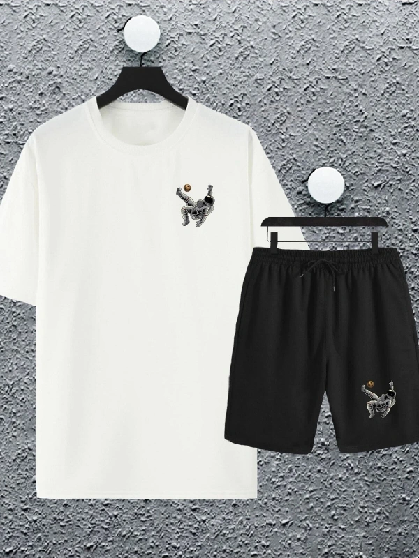 macklin Unisex Kadın Erkek Astronot Futbolcu Baskılı Oversize Tshirt Ve Şort Eşofman Takımı m