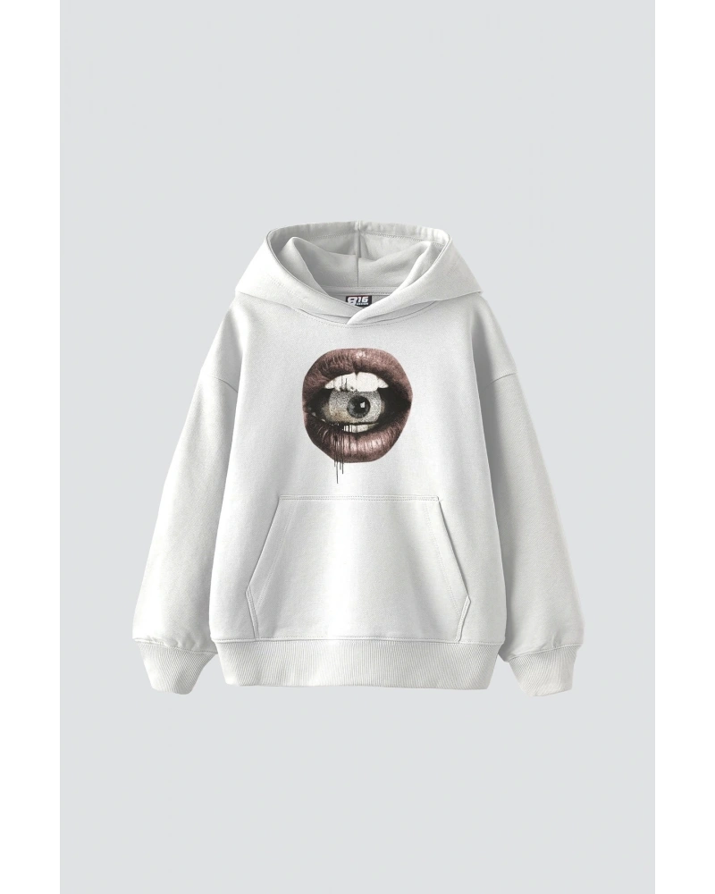 Eye In Mouth Baskılı Oversize Unisex Premium Beyaz