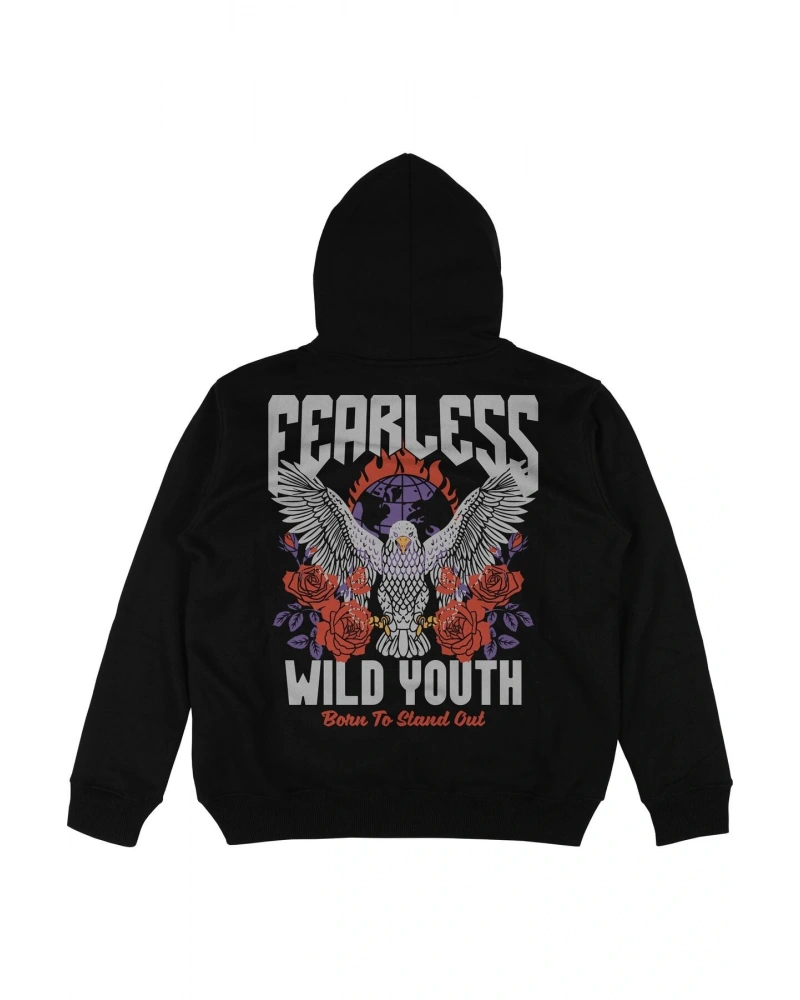 Fearless Siyah Oversize Unisex Kapüşonlu Sweatshirt Hoodie