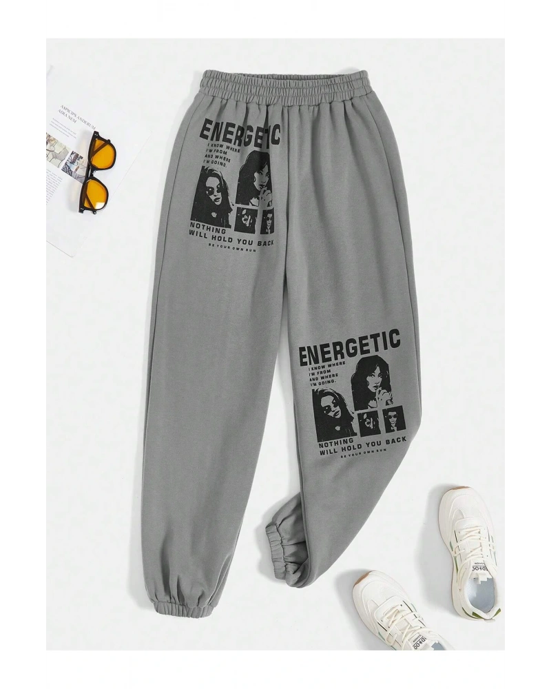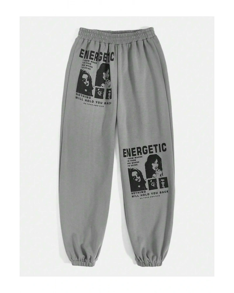 Cartoon Face & Slogan Graphic Drawstring Waist Eşofman Altı