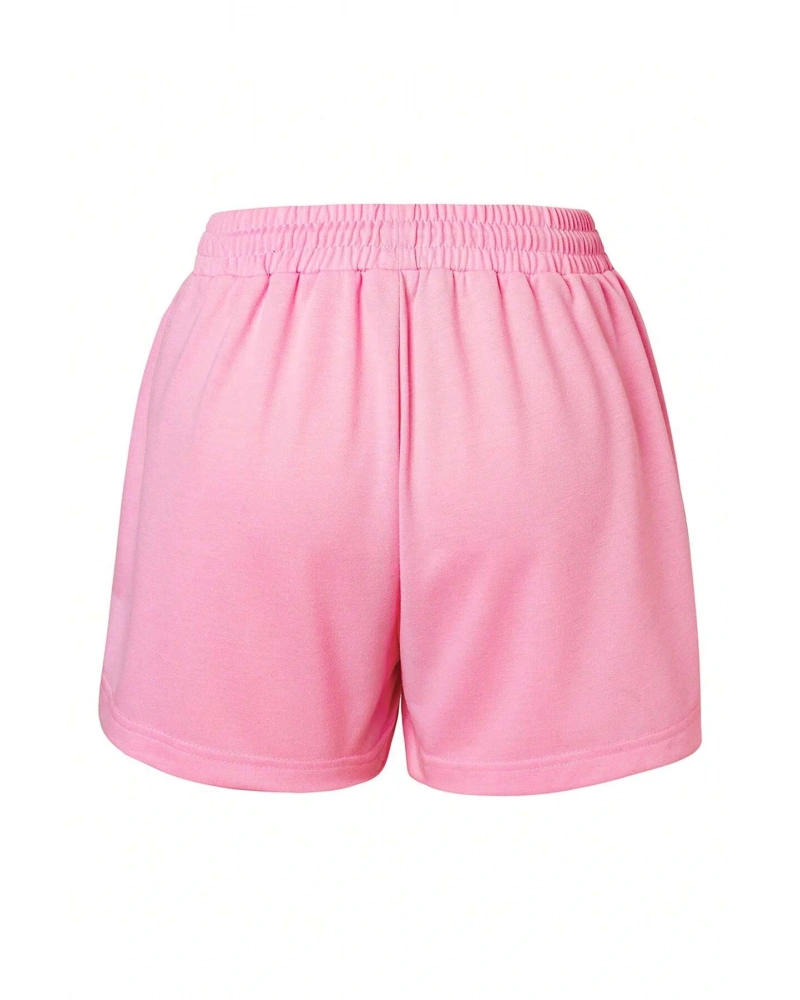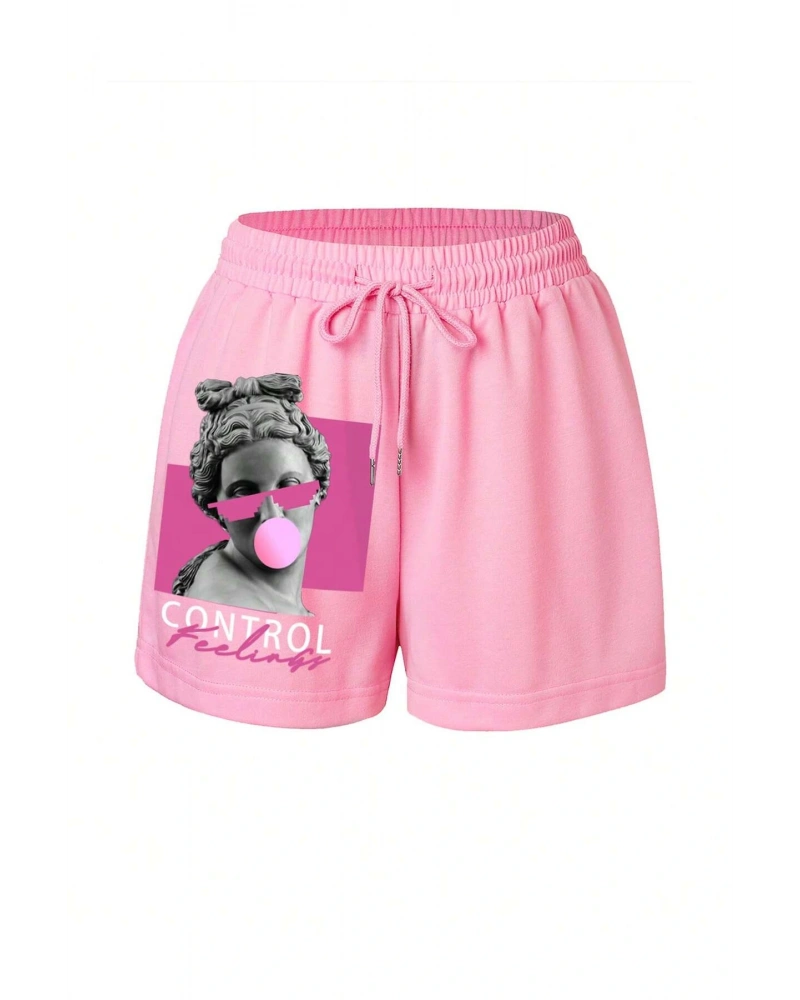 Figure & Letter Graphic Drawstring Waist Şort