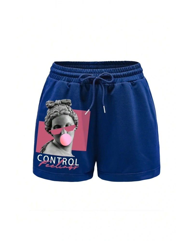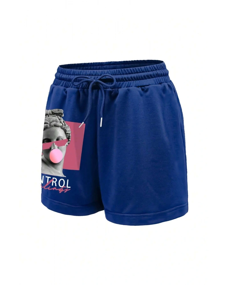 Figure & Letter Graphic Drawstring Waist Şort