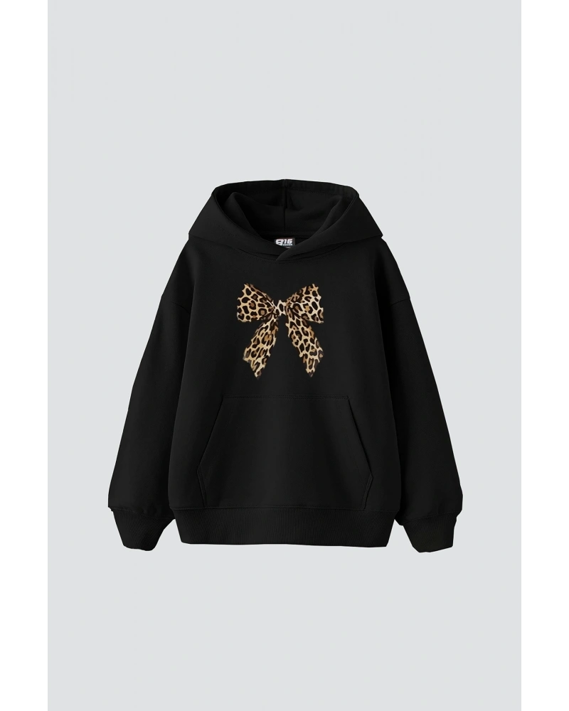Fiyonk Leopar Baskılı Oversize Unisex Premium Siyah
