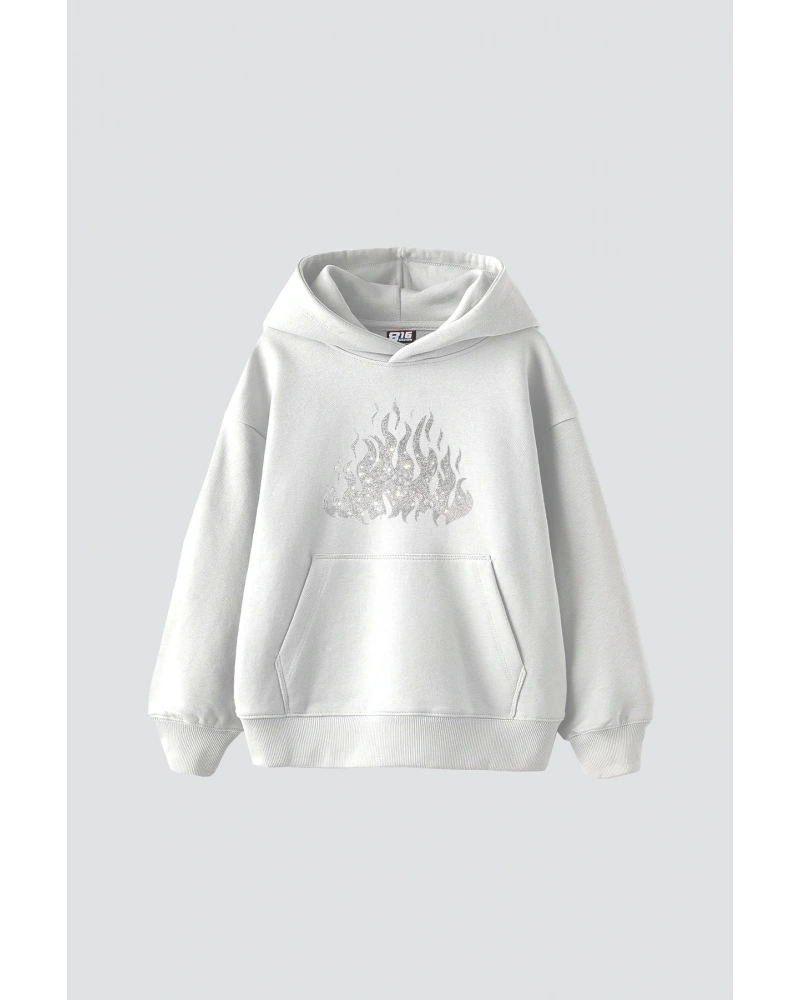 Flame Taş Baskılı Oversize Unisex Beyaz