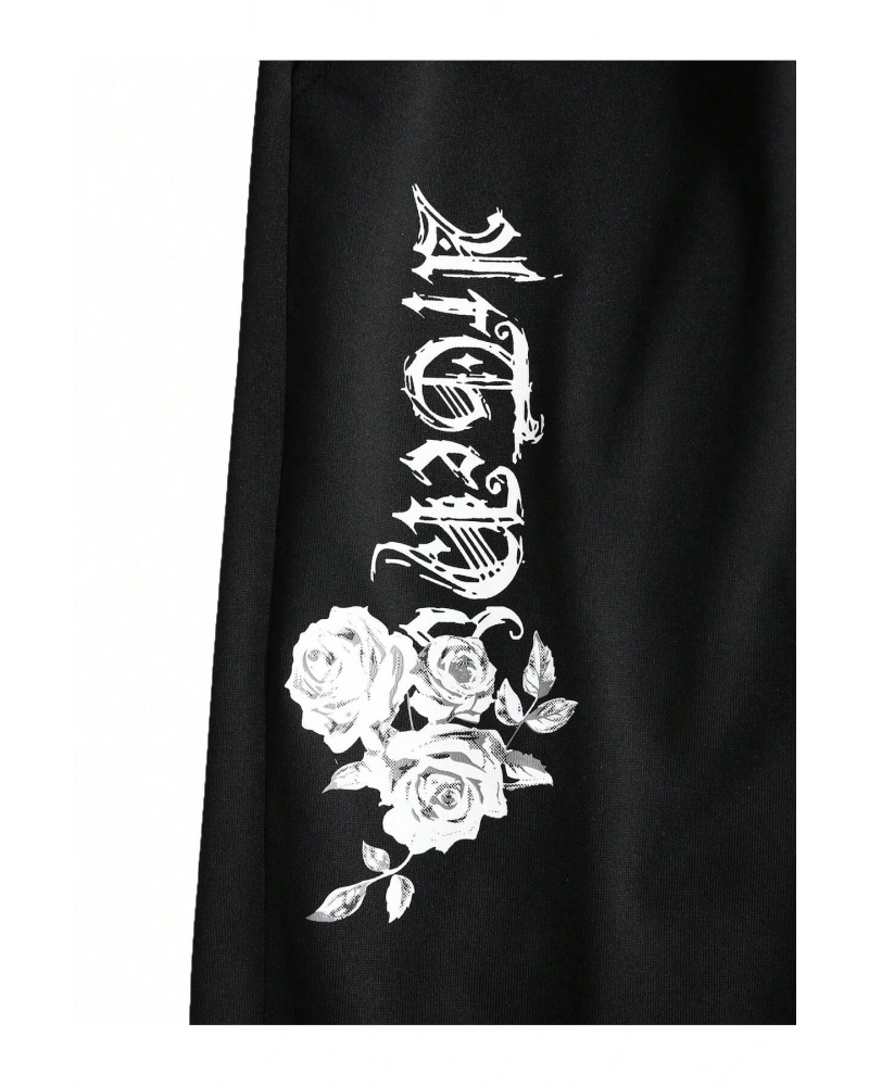 Floral & Letter Graphic Drawstring Waist Eşofman Altı