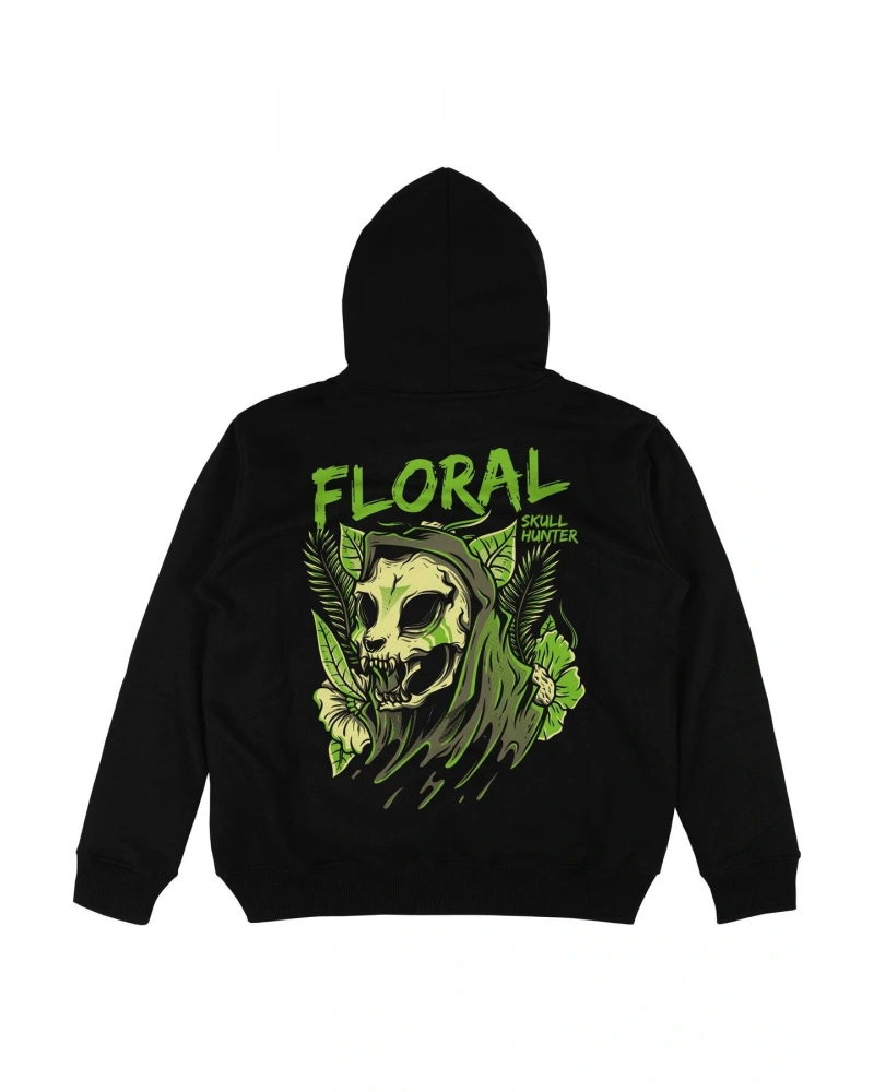 Floral Siyah Oversize Unisex Kapüşonlu Sweatshirt Hoodie