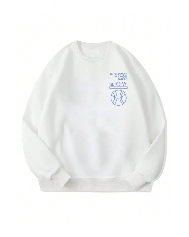 Manfinity EMRG Cartoon And Slogan Graphic Sweatshirt Beyaz