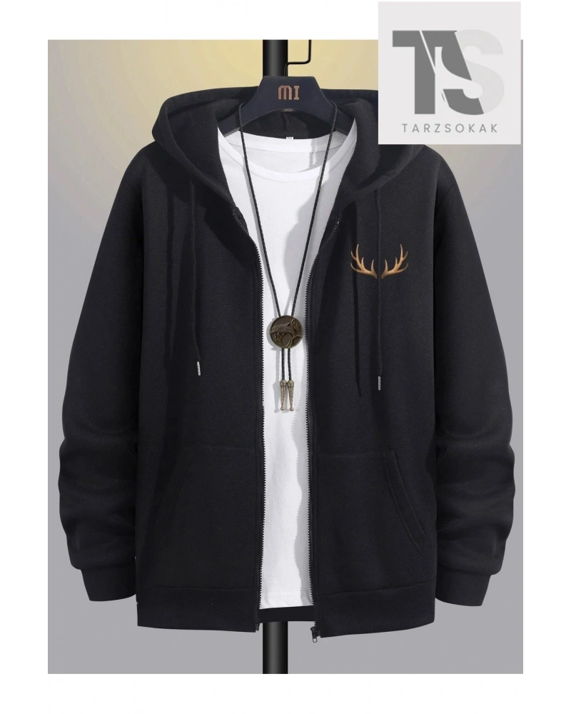 Geyik Boynuz Sweatshirt Fermuarlı Hırka