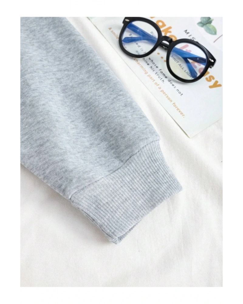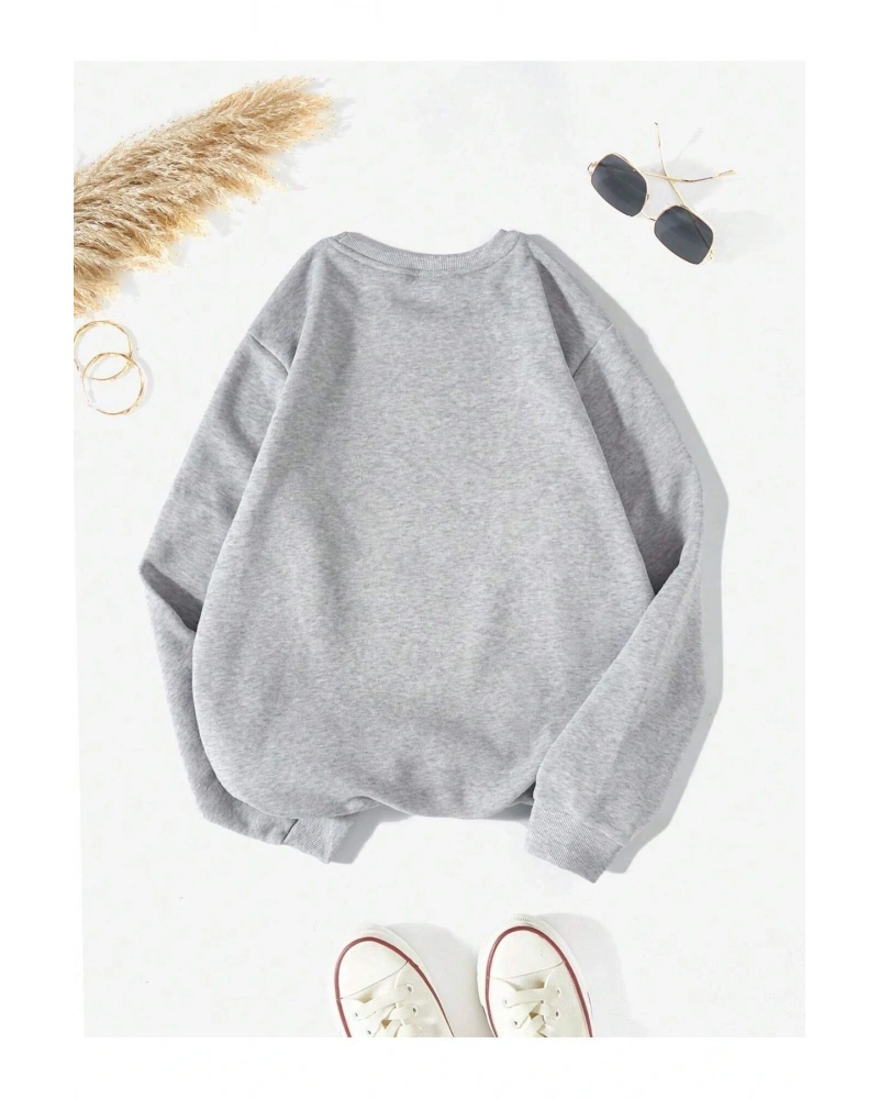 Göğüs Baskılı Üç İplik Ünisex Oversize Sweatshirt Gri