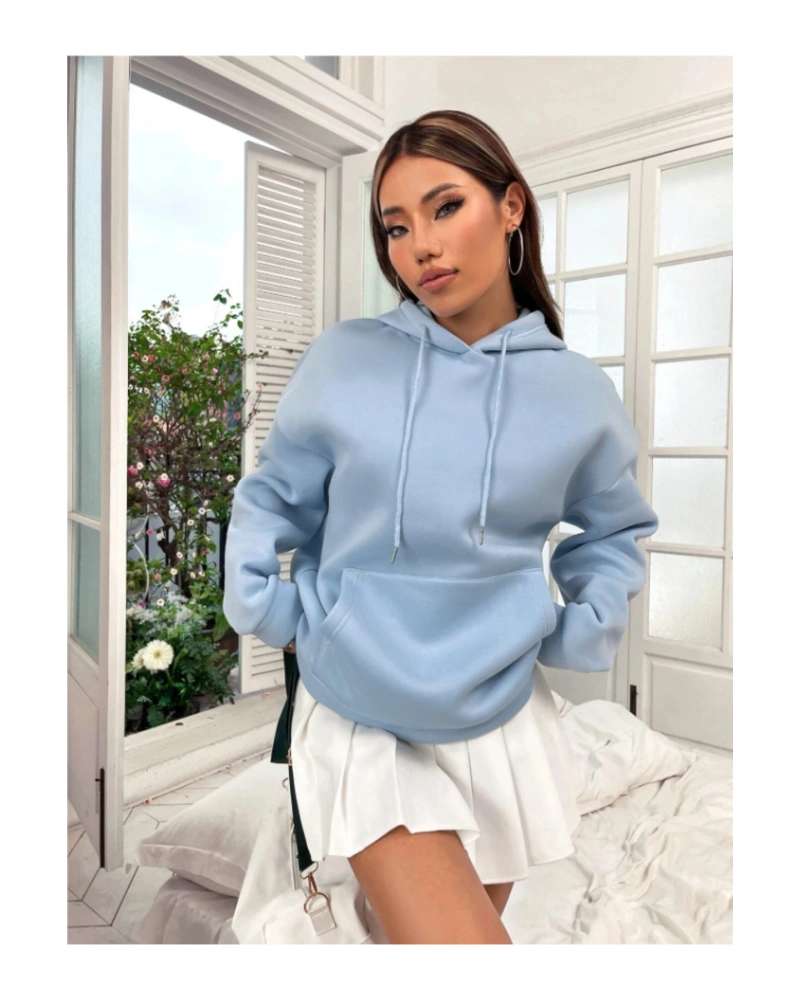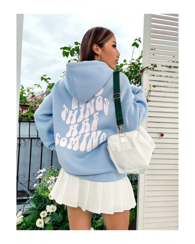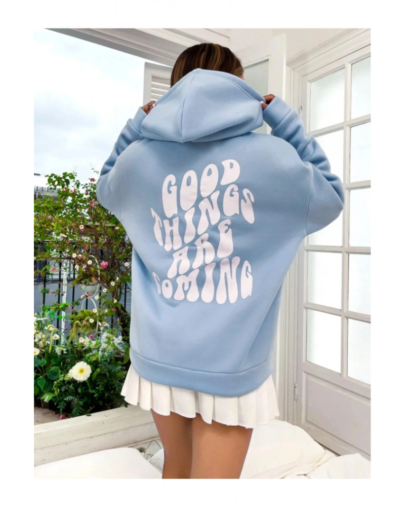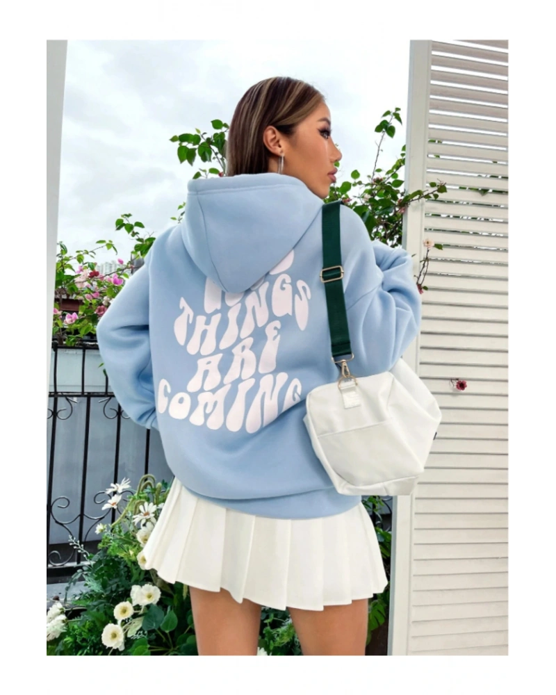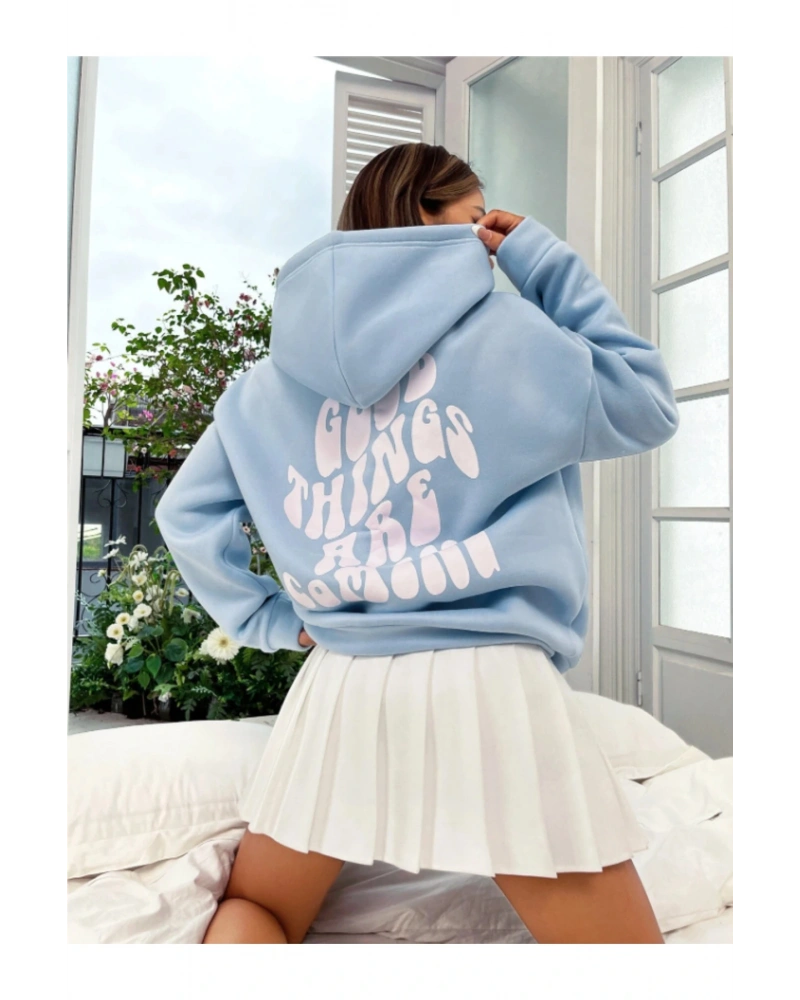 GOOD Renkli Özel Seri Oversize Kapüşonlu Sweatshirt BEBE MAVİ