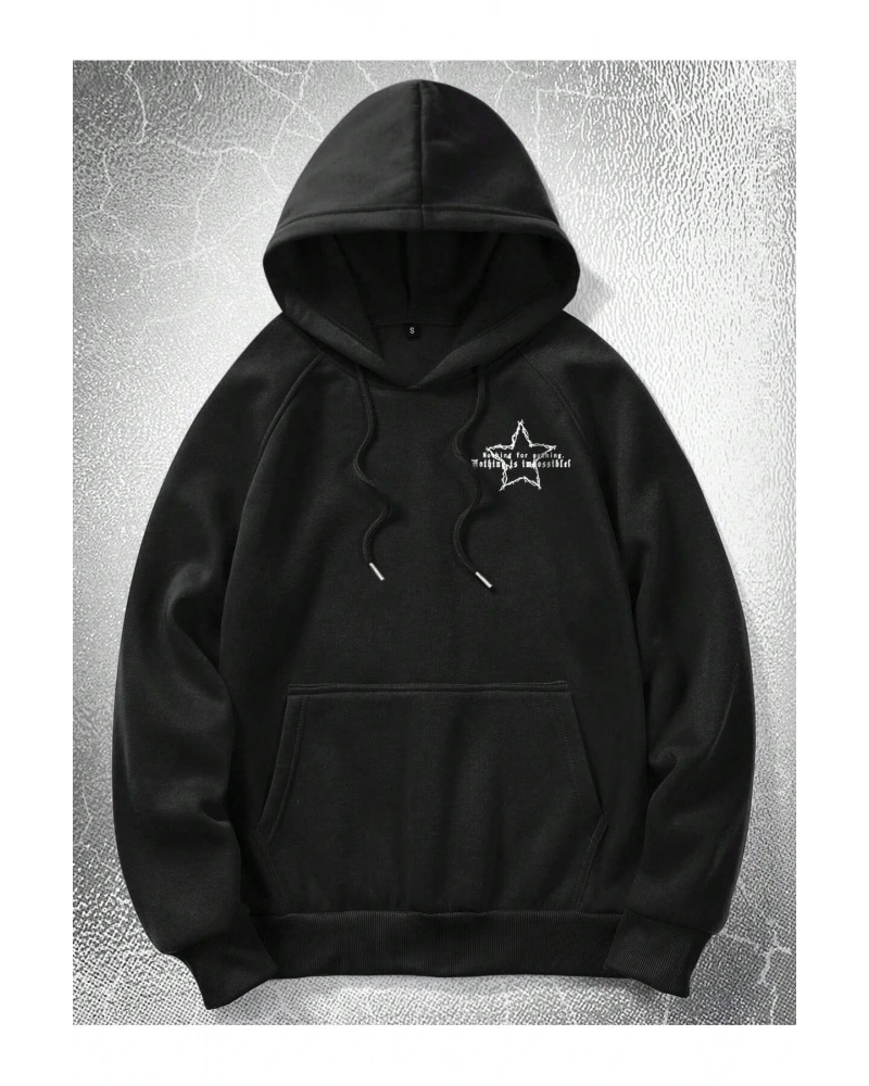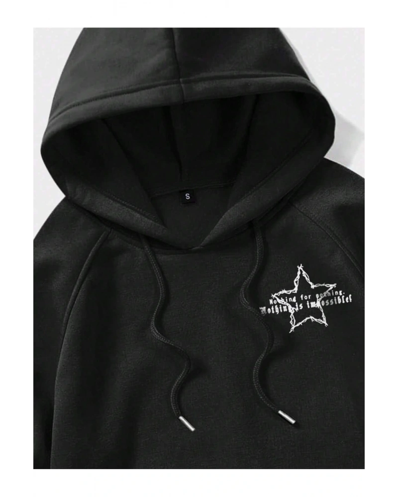 Goth Guys Star & Slogan Graphic Raglan Sleeve Drawstring Hoodie Siyah