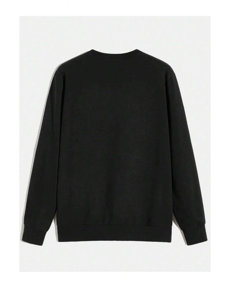 Siyah Yakasız Tüy Baskılı Unisex Sweatshirt