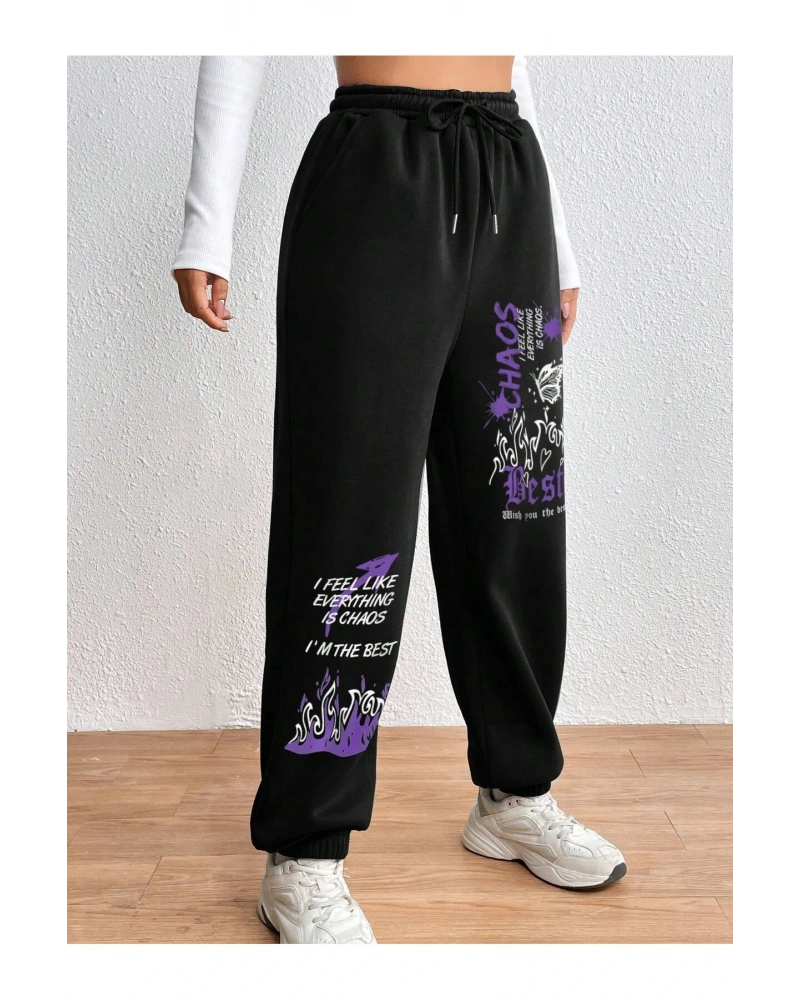 Graphic Drawstring Waist 4 Mevsim Eşofman