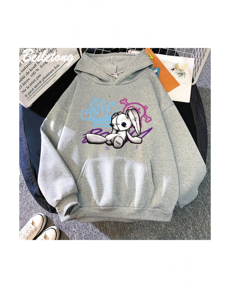Gri Arcane Jinx Hoodie Maymun Bebek Tavşan Graffiti Grunge Tarzı Kpop i Siyah Anime