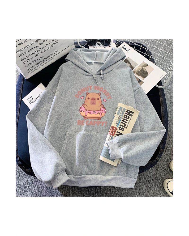 Gri Capybara Endişelenmeyin Cappy Sudaderas Con CapuchaSıcak