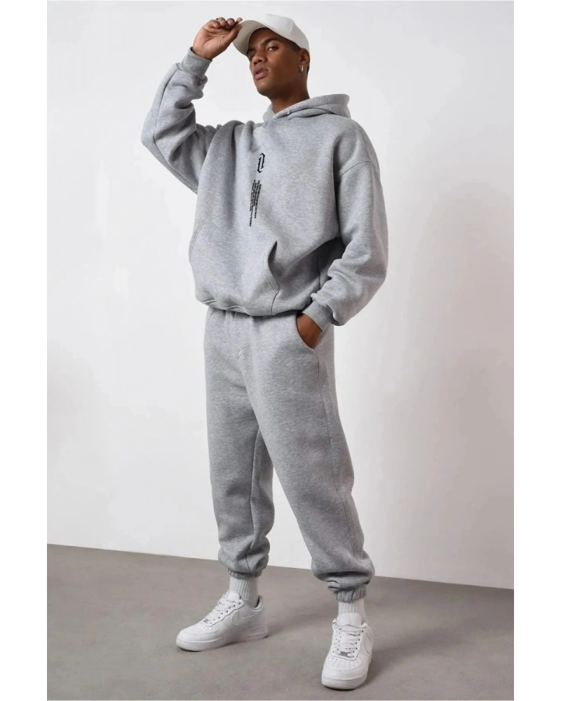 Gri Dikey Dijital Baskılı Kışlık UNİSEX Eşofman Takımı