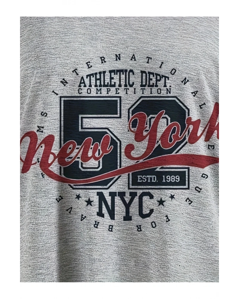 Gri Kadın Düşük Omuz Kayık Yaka New York 52 Baskılı